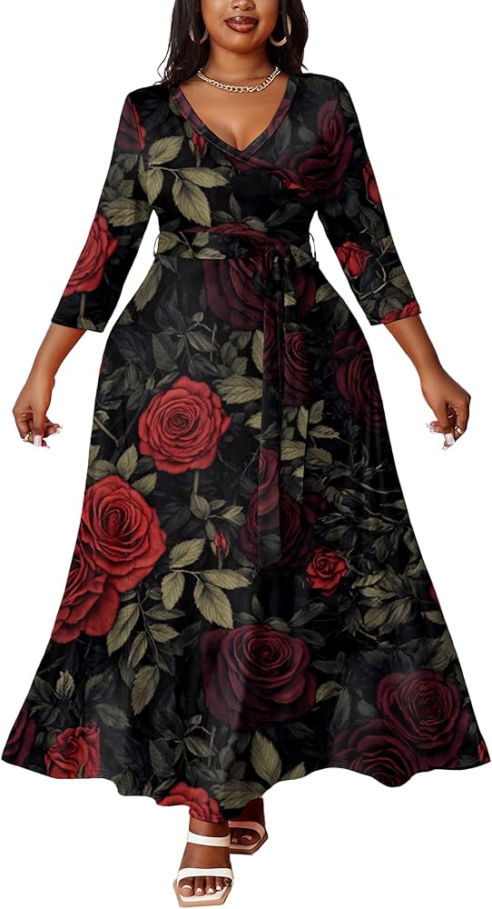 【ميزات الفستان المنحني】: يتميز الفستان الطويل ذو المقاس الكبير بأكمام مرفرفة أنيقة 3/4 توفر لمسة أنثوية وعصرية. النمط الأفريقي، طباعة زهور الأقحوان، طباعة عباد الشمس، طباعة الورد، أنيقة جدًا وساحرة. طباعة زهور رسمية، متواضعة، جميلة، تجعلك مركز الاهتمام في كل مناسبة