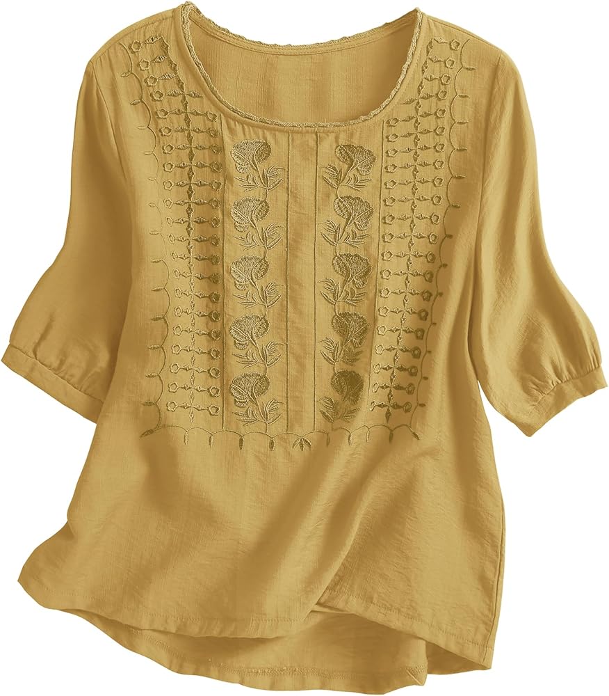 نسيج فاخر: مصنوع من مادة ناعمة وخفيفة الوزن وجيدة التهوية، يوفر هذا القميص الراحة القصوى للارتداء طوال اليوم. التطريز الرقيق مدعوم ببطانة ناعمة، مما يمنع أي تهيج للجلد من الأنماط المعقدة مع ضمان مظهر مصقول ومتواضع، حتى تظل واثقًا وجميلاً طوال اليوم.