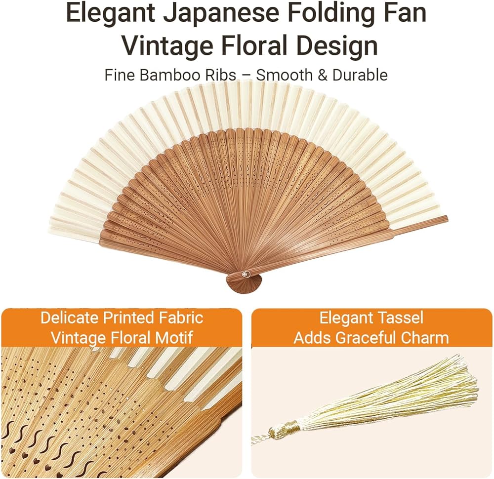 【Exquisite Craftsmanship】Made with fine bamboo ribs and delicate printed fabric, each fan is carefully crafted for elegance and durability.