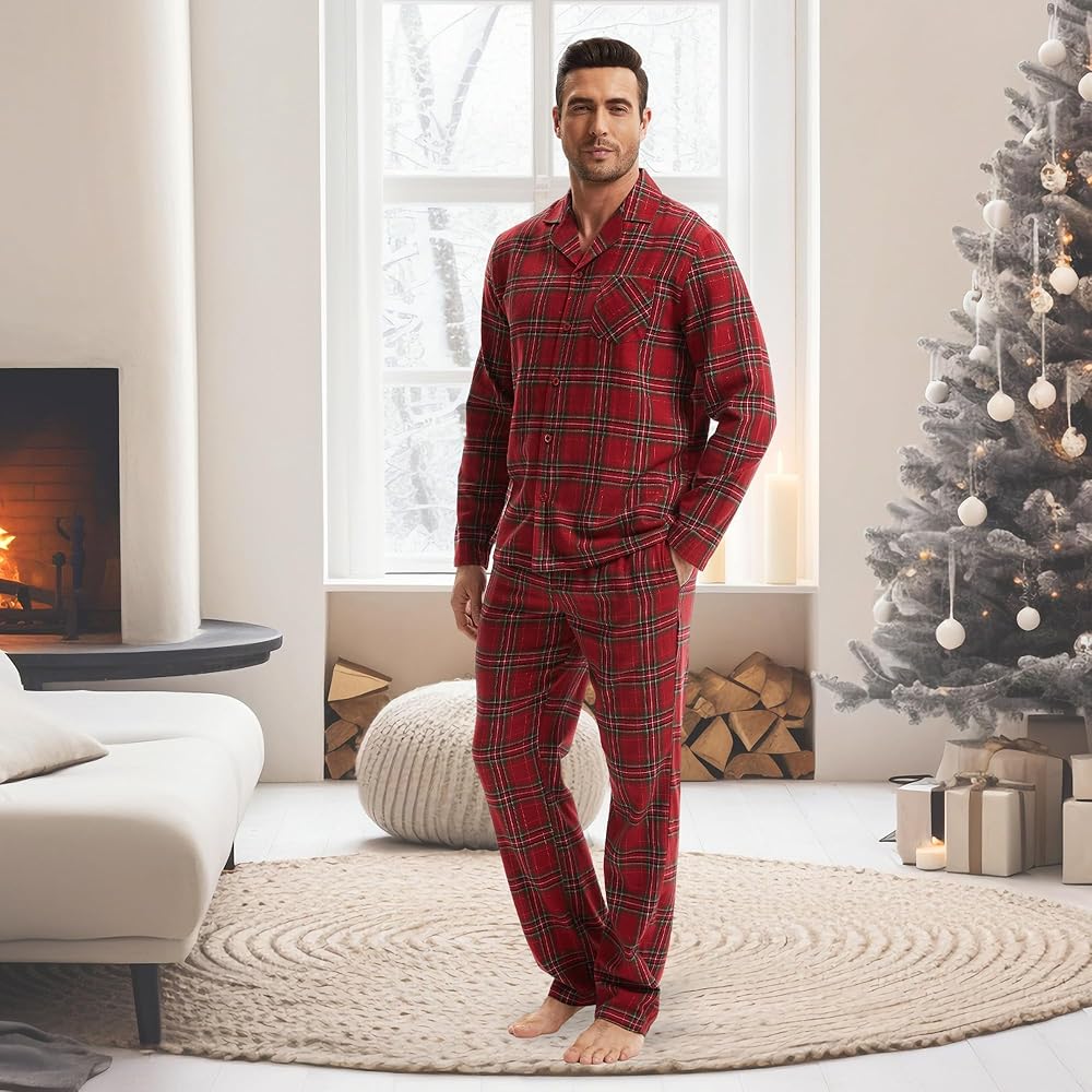 100% قطن فلانيل - ناعم ودافئ: مصنوع من فلانيل القطن الخالص، هذا القماش جيد التهوية بشكل طبيعي مع توفير دفء ممتاز. إنه ناعم على البشرة ومثالي لليالي الخريف والشتاء الباردة، مما يبقيك مرتاحًا في الداخل.