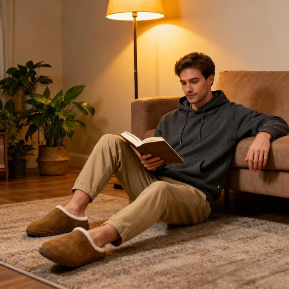 دفء قطيفة: بطانة ناعمة غامضة تحيط بقدميك براحة دافئة، مما يجعلها الرفيق المثالي للشتاء للأرضيات الباردة.