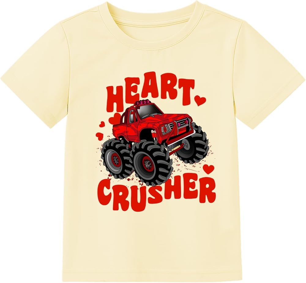 【أنيق ومتعدد الاستخدامات】 مزين بكسارة قلب شاحنة الوحش اللطيفة، قلب حب الديناصورات، طباعة بطة لطيفة، قميص عيد الحب للأطفال الصغار يمكن مطابقته بسهولة مع الجينز والسراويل القصيرة والسترات والسراويل والتنانير. قمصان عيد الحب الرائعة هذه هي الخيار الأمثل للاحتفال بعيد الحب!