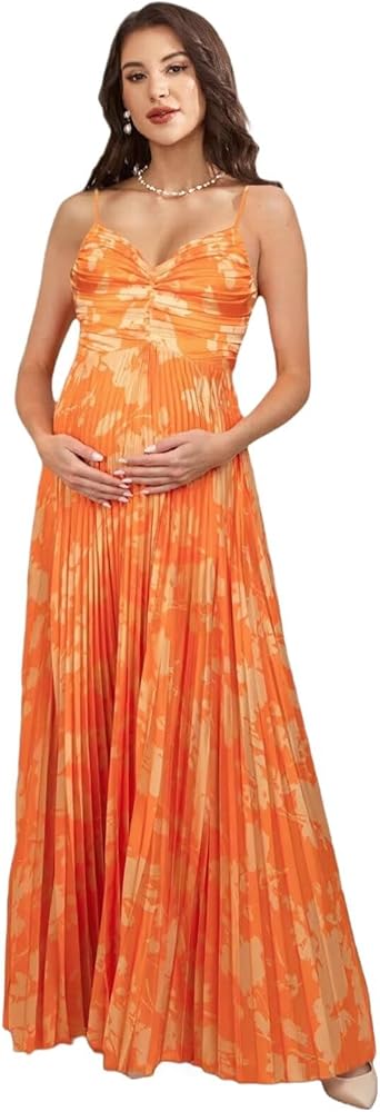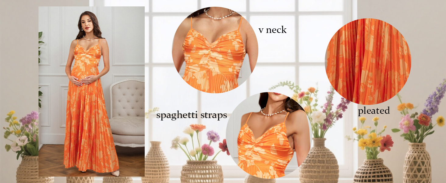 • الميزات: فستان حمل من الساتان مطوي لالتقاط الصور، خط، رقبة على شكل حرف V، فساتين حمل بأشرطة سباغيتي