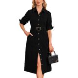 المميزات - فستان قصير متوسط الطول على شكل قميص، وأكمام طويلة وزر سفلي من الأمام مع حزام عصري ومتعدد الاستخدامات، مما يجعلك تبدين أكثر نشاطًا