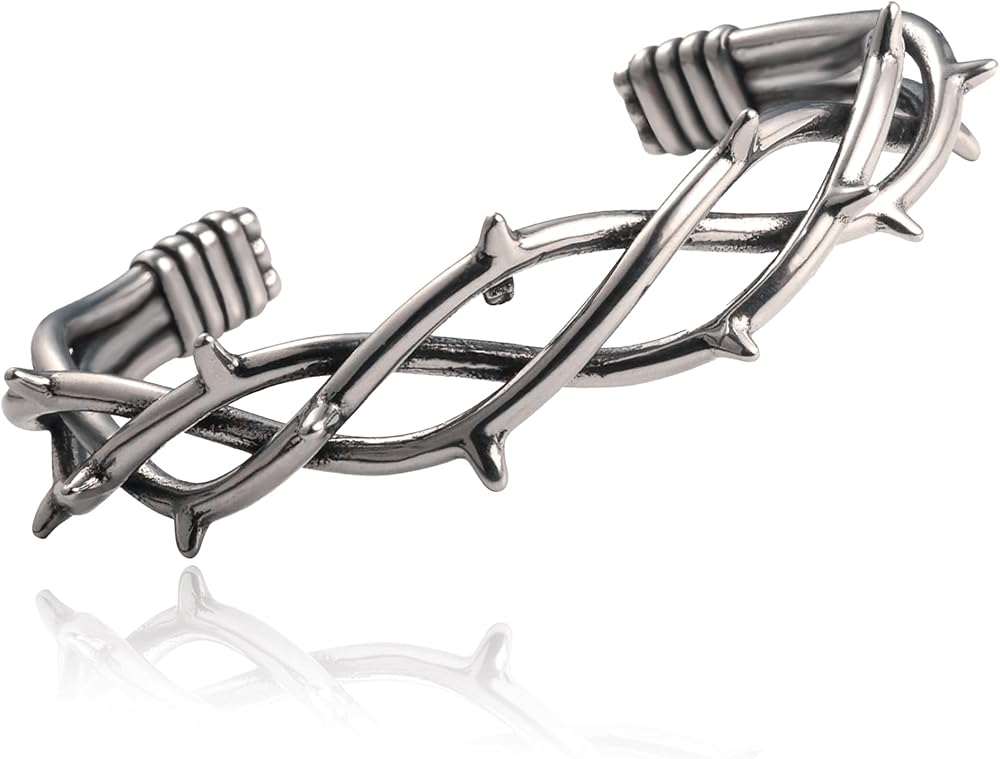 1. 【سوار الكفة القوطية مع تصميم شوكة الأسلاك الشائكة 】 تتميز قطعة المجوهرات القوطية هذه بتصميم سوار من الأسلاك الشائكة مع لمسات شوكة مفصلة. يُنشئ سوار الكفة المصنوع من الفولاذ المقاوم للصدأ بيانًا جريئًا مثاليًا لإكمال ملابس البانك أو إضافة حافة بديلة للمظهر اليومي.