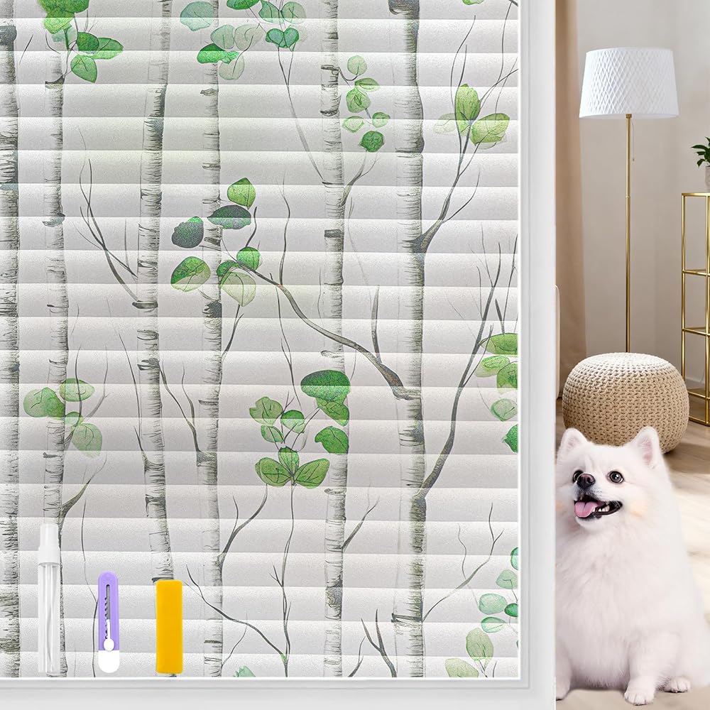 تصميم زخرفي: يتميز بنمط أنيق من غابات البتولا والنوافذ المغلقة، يضيف غشاء النافذة هذا لمسة طبيعية ومنعشة إلى أي غرفة مع الحفاظ على خصوصية منزلك.