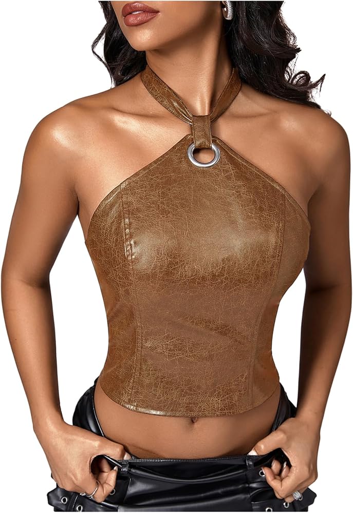 • Sexy Leather Tops, Rave Tops, Date Night Tops, Summer Tops, Going Out Tops, Cut Out, Lace Up, Tie Back, Backless, Slim Fit, Criss Cross, Sleeveless