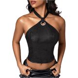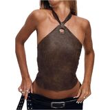 قمصان علوية نسائية من Verdusa Y2K بأربطة من الجلد بدون ظهر مع رسن علوي Rave Club للخروج in Kuwait