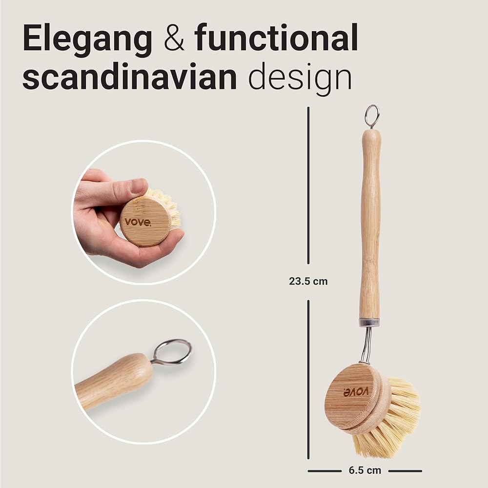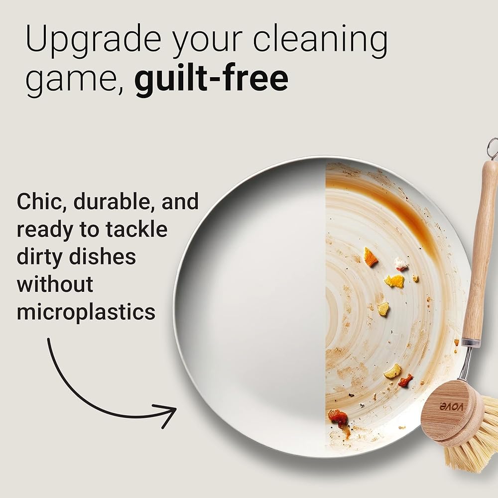 شعيرات طبيعية 100% وآمنة غير لاصقة: تتميز فرشاة الأطباق فوفي Bamboo بشعيرات سيزال صديقة للبيئة مصدرها نباتات بالميرا والسيزال في المكسيك، وهي مثالية لتنظيف الأواني والمقالي والأطباق وغيرها. الشعيرات المتينة تنظف بفعالية دون الإضرار بأدوات المطبخ الخاصة بك