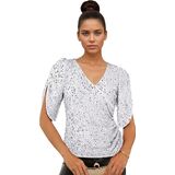 قمصان علوية نسائية بالترتر 3/4 كم سباركلي للنساء، قميص برقبة على شكل حرف V مزين بالترتر in Kuwait قمصان علوية نسائية بالترتر 3/4 كم سباركلي للنساء، قميص برقبة على شكل حرف V مزين بالترتر in Kuwait