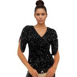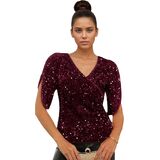 • Occasion: These sequined velvet tops for women are perfect for parties, cocktail parties, concerts, clubs, date nights, evening outings, and more. The sequins on the shirt catch and reflect light, making you shine in any setting.