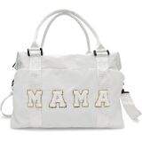 جودة عالية: هذه حقيبة رائعة من النايلون الأبيض الكريمي مع رقع الشانيل البيضاء من MAMA. مريحة الملمس، مقاومة للماء وسهلة التنظيف. تتميز بمقبض من القماش المقوى مقاس 23 بوصة يسمح لأمتعتك بالانزلاق فوق المقبض لسهولة الحمل.