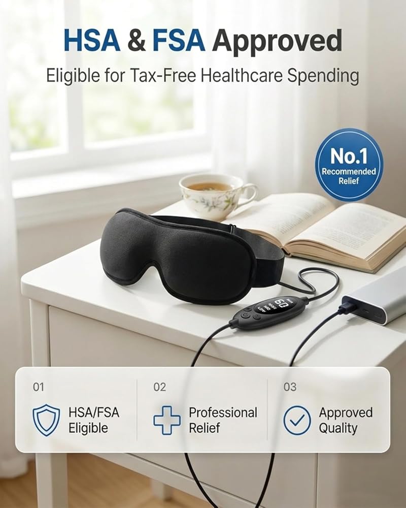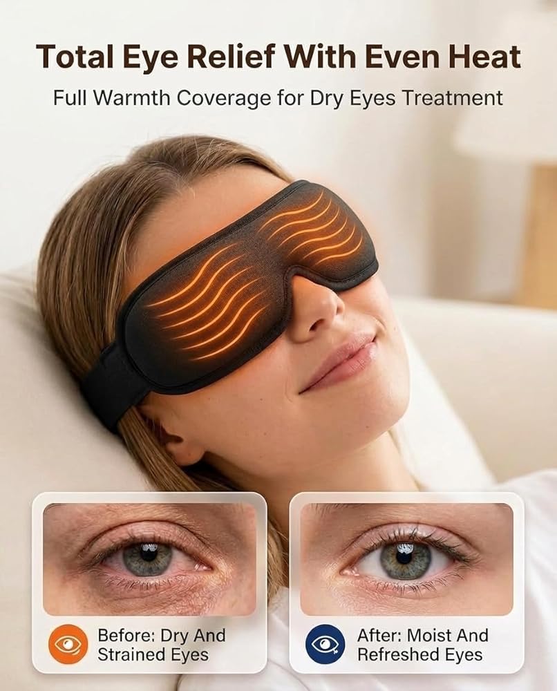 Heated Eye Mask for Dry Eyes Relief: Experience gentle, consistent warmth that helps relieve dry eyes, eye strain, blepharitis, puffiness, sinus pressure, and styes. This USB heated eye mask delivers a soothing moist heat compress that relaxes tired eyes, supports tear gland health, and promotes better sleep. Perfect for those who spend long hours on screens or suffer from dryness and tension.