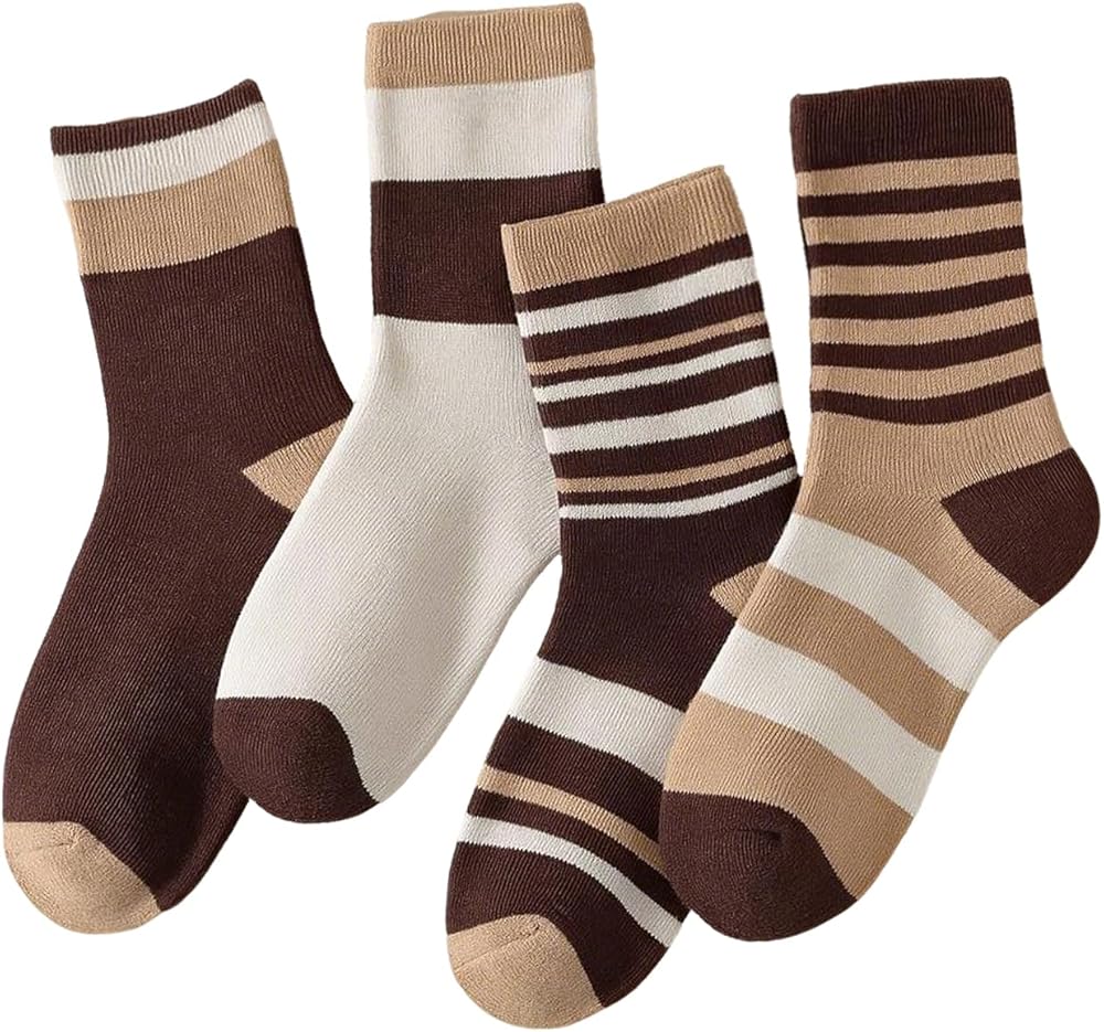 جوارب قطنية للسيدات: 4 قطع. ليس نحيفًا أو سميكًا جدًا - الوزن العادي. تنفس، ناعم، مريح. البقاء حتى منتصف الساق. مثالي للفساتين/السراويل، لجميع المواسم، للاستخدام اليومي في المنزل/المكتب