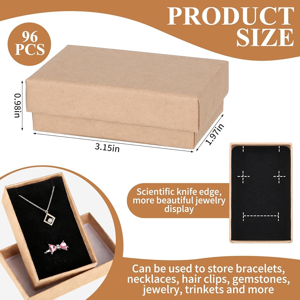 Bulk Value Set: This jewelry gift boxes bulk set includes 96 small kraft jewelry boxes with matching lids and foam inserts. The ample quantity is ideal for small business packaging, craft fairs, boutiques, and online jewelry selling, helping streamline daily packaging and presentation needs