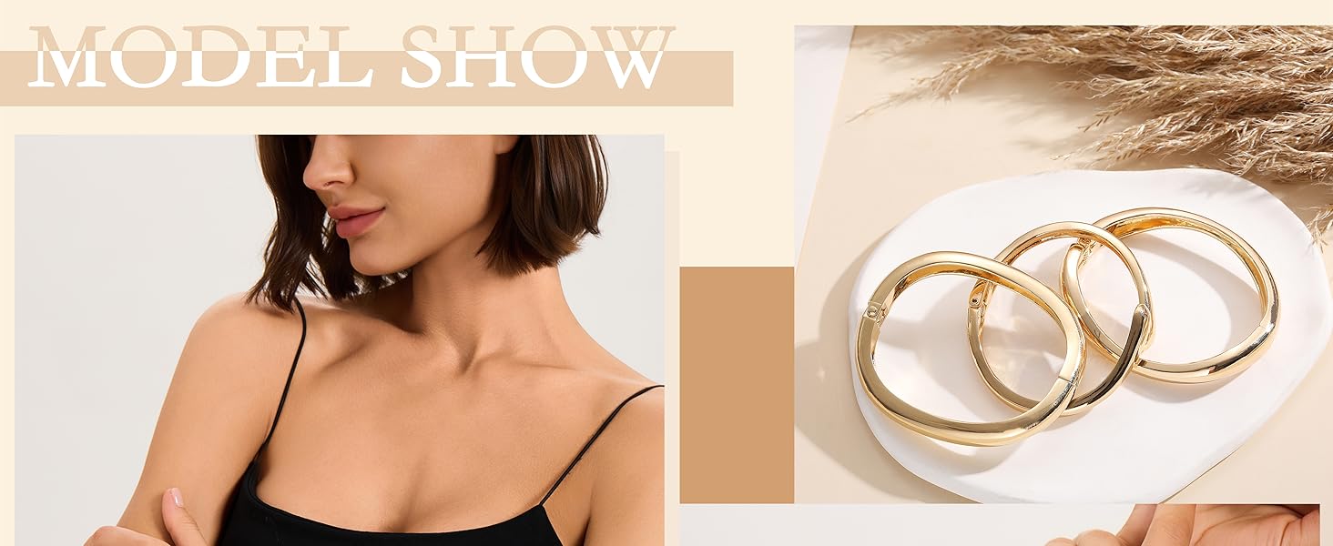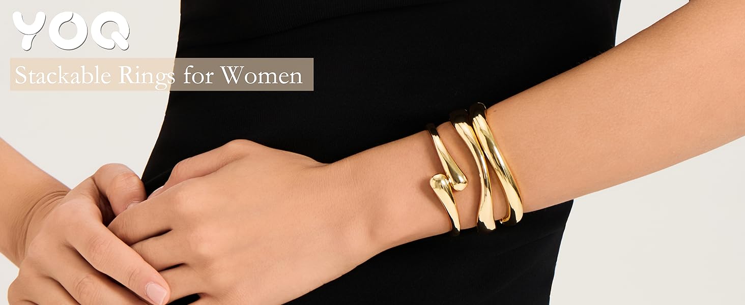أساور ذهبية مكتنزة للنساء، أساور ذراع ذهبية مكدسة، 3 قطع أساور عصرية قابلة للتكديس هدايا مجوهرات