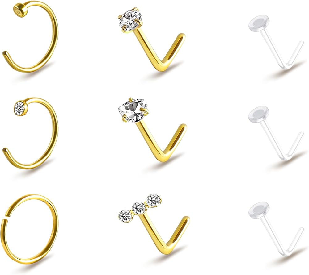 مجموعة عملية مكونة من 9 قطع + تم اختبارها بالنيكل تتضمن أطواقًا ذهبية ومسامير تثبيت على شكل حرف L ومسامير أنف شفافة - فقط الأنماط عالية التردد التي سترتديها بالفعل. تم اختبار إطلاق النيكل للمساعدة في تقليل الاحمرار والتهيج.