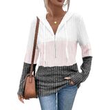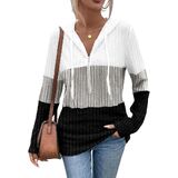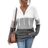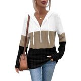 تفاصيل التصميم: يتميز هذا القميص طويل الأكمام بتصميم كلاسيكي بغطاء رأس يضفي لمسة كاجوال ومريحة. إنها تعتمد خياطة كتل الألوان مع انتقالات سلسة وطبقات غنية، مما يكسر رتابة اللون الواحد. النسيج المحبوك على الملابس واضح وثلاثي الأبعاد، وتسمح تفاصيل الرباط القابلة للتعديل في القلنسوة بتعديل مجاني لتلبية احتياجات التصميم المختلفة.