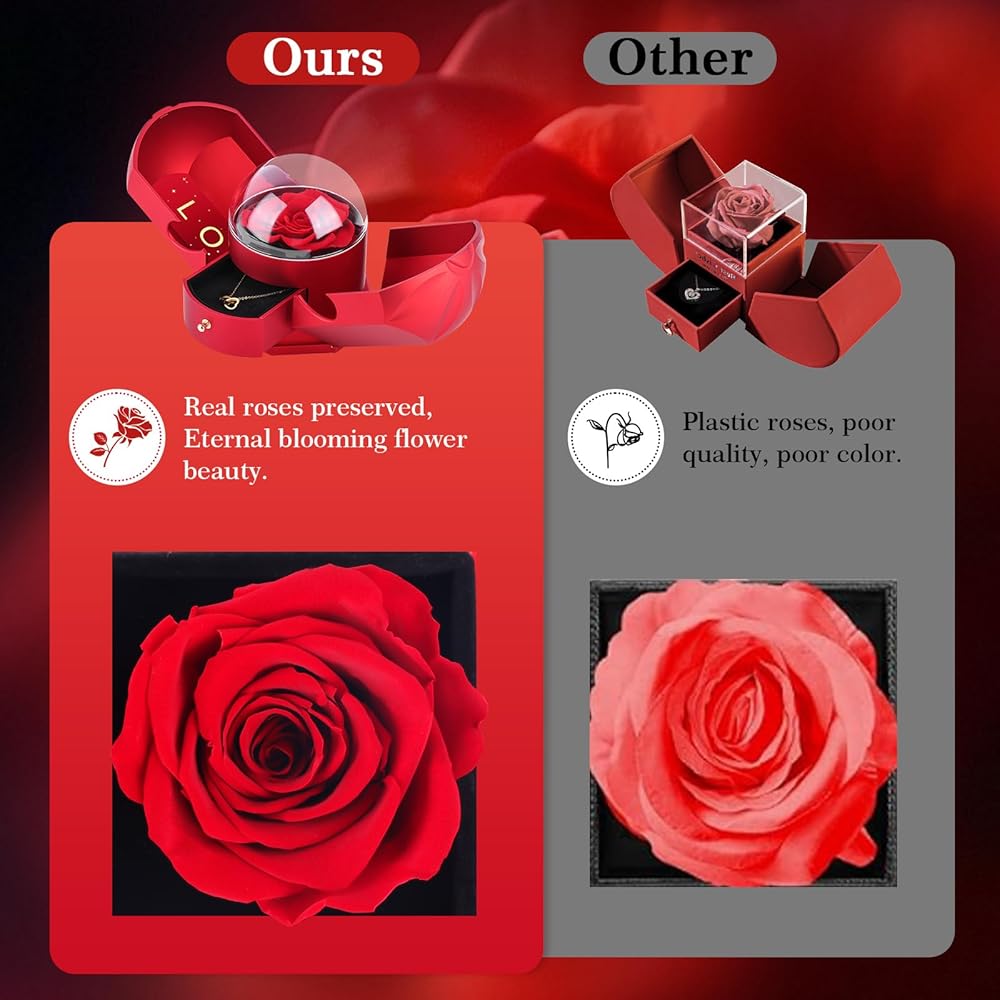 🌹【عبوة رائعة وبطاقات تهنئة】: زهرة ورد حقيقية وقلادة على شكل قلب في صندوق هدايا رائع، تأتي مع بطاقة هدية (يمكنك ملؤها بنفسك). يتم تخزين الورود الحقيقية الزاهية والجميلة على صندوق الدرج بغطاء شفاف. إذا كانت لديك أي أسئلة، فيرجى الاتصال بنا.