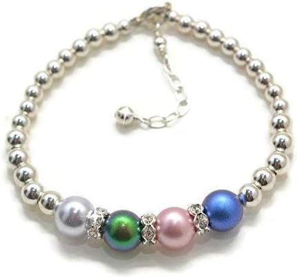 Please be sure to review the Pearl Birthstone Color Chart prior to placing an order to ensure you like the colors. I've chosen the available colors that most closely match traditional birthstone colors. Please note that some colors have a beautiful iridescent, shimmer finish that is not as shiny as the non-iridescent colors. For some months, the iridescent finish color was the only option available to match a particular month. If you would like a different color for a particular month, just list the month of the color you want instead. For example, if you'd rather have the July color used for January - simply list July when you list out your birthstone month choices. You may also contact us prior to placing an order to inquire about other colors not shown on the chart. In the rare instance that a color is discontinued or is out of stock, we will substitute the next closest color to the traditional birthstone color. Please Note that custom made to order jewelry cannot be Returned or Exchanged. However this bracelet can be sent back to be resized for a small fee. Just contact us and we'll provide all the information for re-sizing.