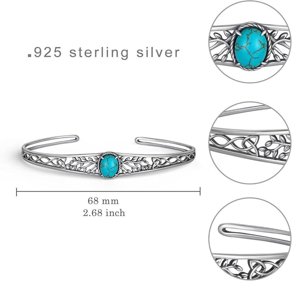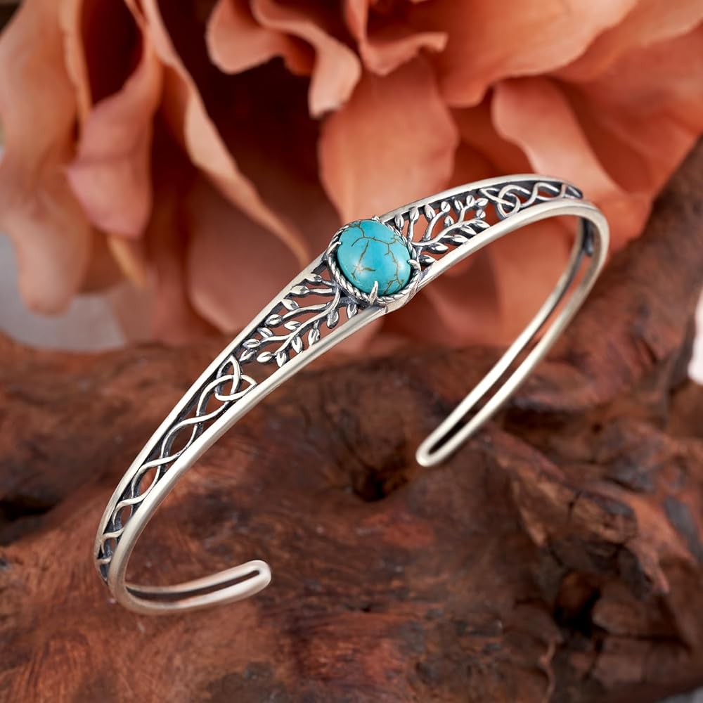 Genuine Turquoise Bracelets 925 Sterling Silver Turquoise Bangle Cuff Bracelets Tree of Life Bracelet Vintage Nature Gemstone Jewelry Real Turquoise Jewelry for Women