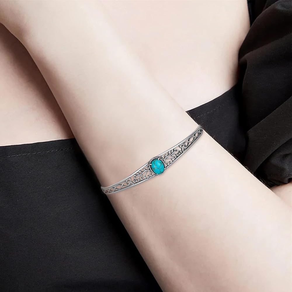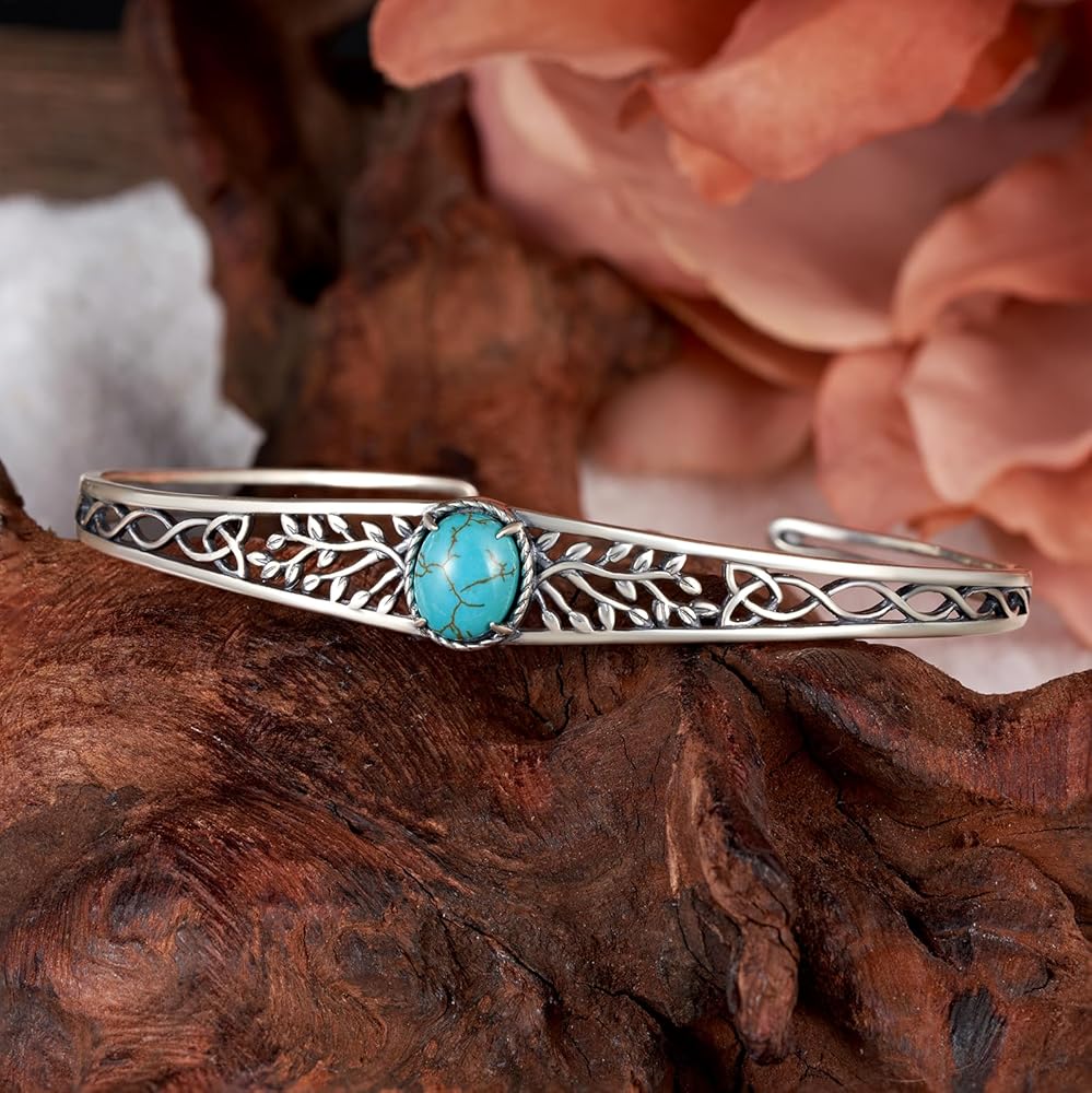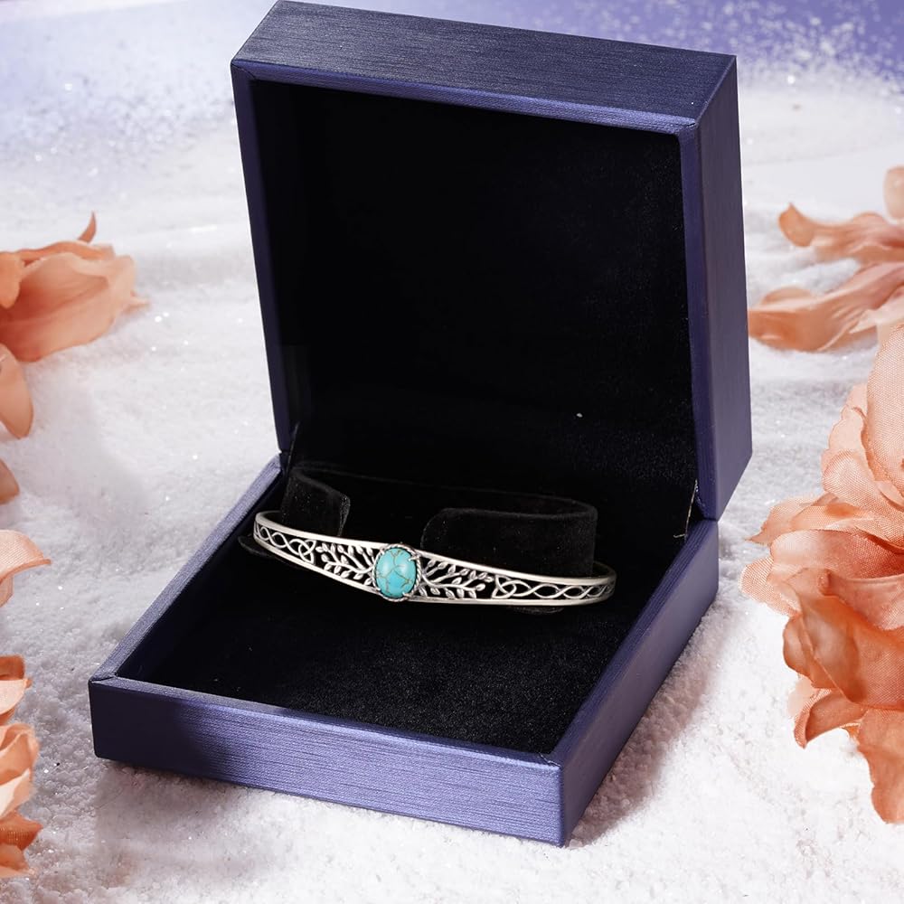 • Genuine Turquoise Bracelet Design: This turquoise bangle cuff features natural turquoise and tree of life design, symbolizing growth and harmony. Inspired by Western heritage, this turquoise bracelet for women captures the beauty of nature and the spirit of the frontier. The real turquoise jewelry add a vibrant touch, making it a standout piece in any western jewelry collection for women.