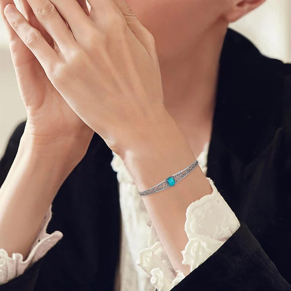 • Turquoise Bracelets for Women Material: Crafted from 925 sterling silver and adorned with natural turquoise, this turquoise jewelry for women is designed with an oxidized finish for a rustic yet refined look. nickel-free, lead-free, cadmium-free and hypoallergenic, which will not damage your skin. ideal western jewelry for women daily wearing.