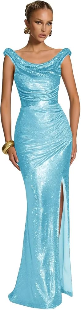 المميزات: فستان طويل وفاخر مزين بالترتر الرائع المتلألئ المتراقص على سطحه. الرقبة المنخفضة الأنيقة والظهر العميق على شكل حرف V يبرزان منحنيات الرقبة والأكتاف بشكل مثالي، مما ينبعث منها سحر ساحر. هناك شق ملفت للنظر على الخصر والحاشية مع طيات ساحرة. يُظهر تصميمنا الرقة والأناقة، مما يجعل هذا الفستان الخيار الأمثل للمناسبات الرسمية.