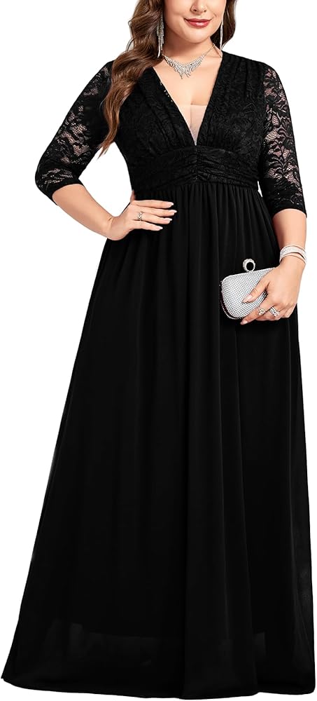 ZOMVA مقاس كبير فستان ماكسي Foraml عميق على شكل حرف v 3/4 كم دانتيل شيفون فساتين زفاف كوكتيل حفلة موسيقية ثوب مسائي in Kuwait