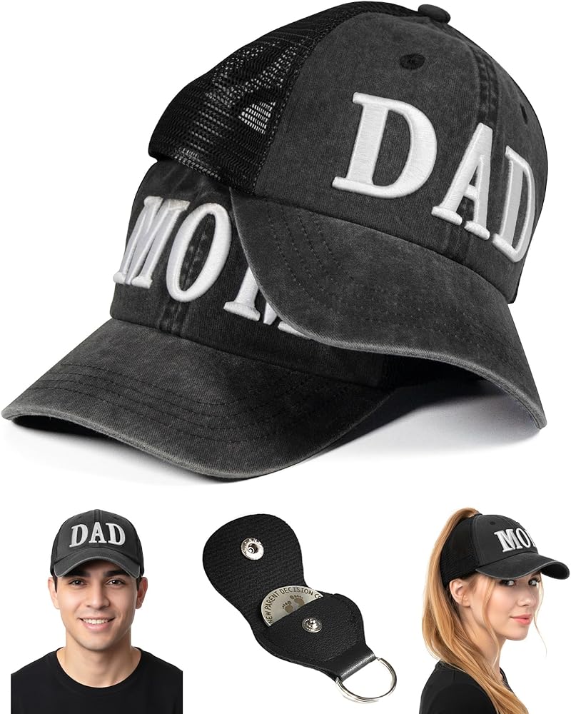Parents Gifts for Couples:The hat features eye-catching embroidered "DAD" and "MOM" letters, is stylish and simple, suitable for both men and women, comfortable to wear, and suitable for all-day use. It's a practical gift for husband and wife, first time parents,parents to be gifts, and couples—ideal for showing off your family bond.
