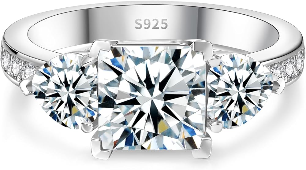 خاتم خطوبة فري كايت مويسانيتي للنساء، 3 حجر D لون VVS1، 925 فضة استرليني مع مطلي بالذهب الأبيض عيار 18 قيراط، خاتم زفاف مويسانيتي، خاتم وعد الذكرى السنوية مع صندوق هدايا، مقاس 4.5-9 in Kuwait
