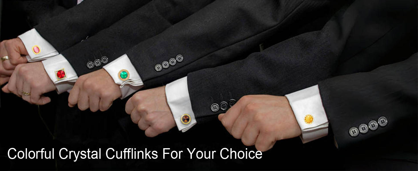 【Easy Coordination with Men's Wear and Accessories】Mens cufflinks featuring crystal stones effortlessly enhance the look of any suit and shirt. These versatile cuff links not only pair beautifully with classic white, black, blue, and red attire, but also with brown, pink, and green accessories such as neckties, necklaces, and brooches, perfect for completing the ensemble for weddings.
