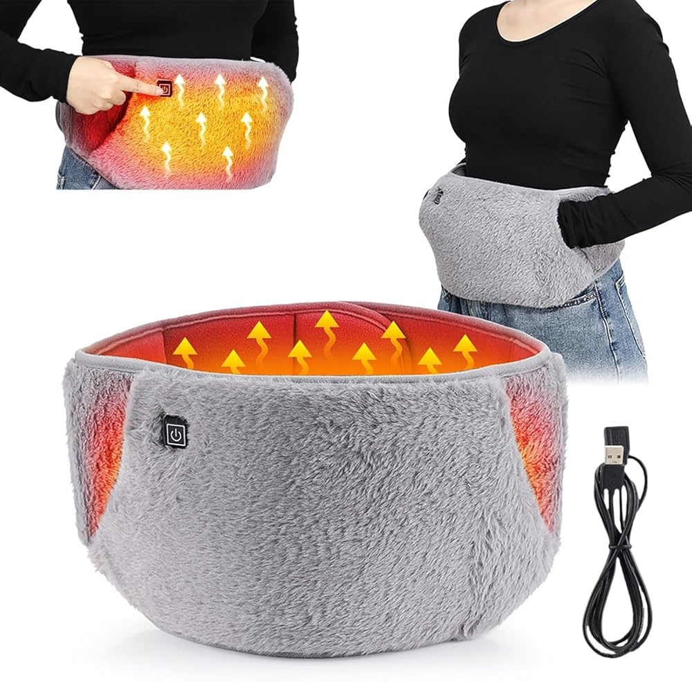 حزام خصر للتدفئة 3 في 1: وسادة تسخين لتهدئة تشنجات الظهر والدورة الشهرية + جهاز تدفئة اليد المحمول، يعمل بمنفذ USB، غلاف حراري قابل للتعديل 3 درجات حرارة للنساء، رمادي
