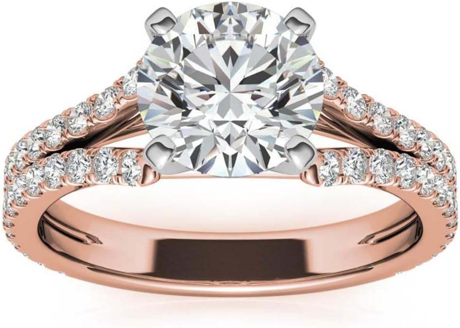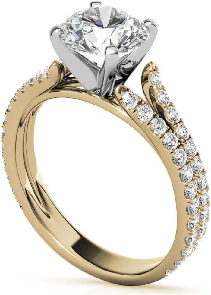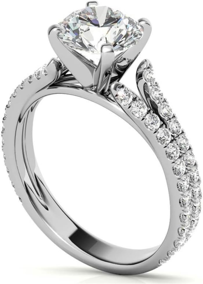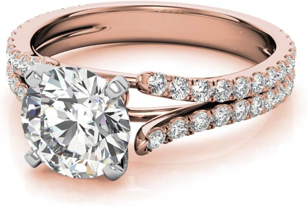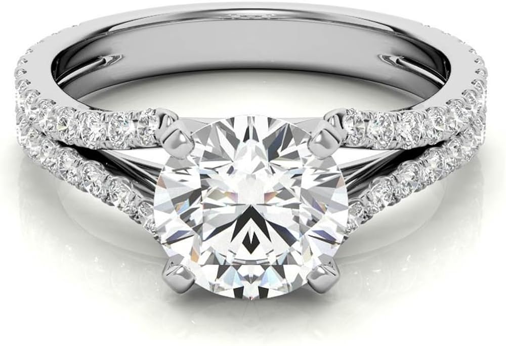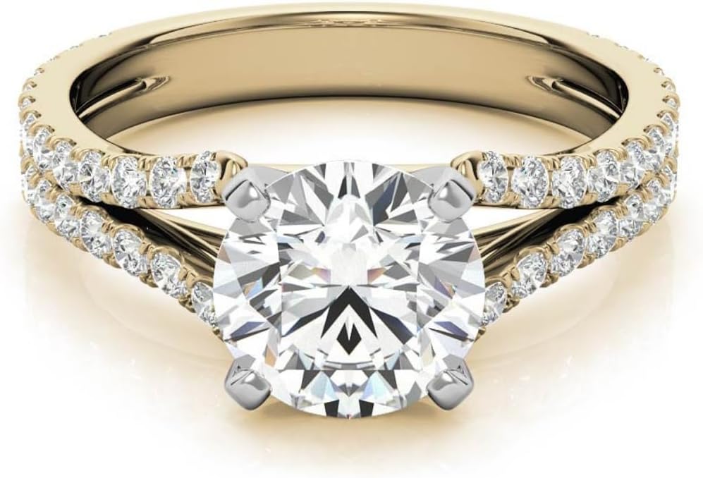 Round Cut Moissanite Anniversary Ring | Wedding Rings for Women Her | Split Shank Cathedral Engagement Ring | Vintage Unique Bridal Promise Gifts