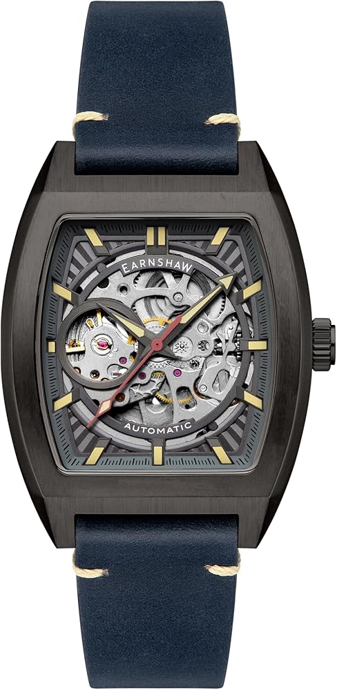 THOMAS EARNSHAW - OUR STORY: Named after the legendary watchmaker whose timepieces helped guide Charles Darwin's voyage around the world, a spirit of adventure and exploration lies at the heart of the Thomas Earnshaw ethos. Each collection of watches is named after an iconic explorer, location or vessel that perfectly embodies the values of Thomas Earnshaw: courage to go beyond the expected. MOVEMENT: The Wellington Skeleton Automatic is powered by a 20 Jewels Automatic skeleton 3 hands movement THE FINER DETAILS: Featuring a 40mm Stainless Steel Case , 21mm Genuine Leather Strap Anti Reflection Coating Mineral Lens and Water Resistance Of Up To 5 ATM. WARRANTY : 2 Years International Warranty