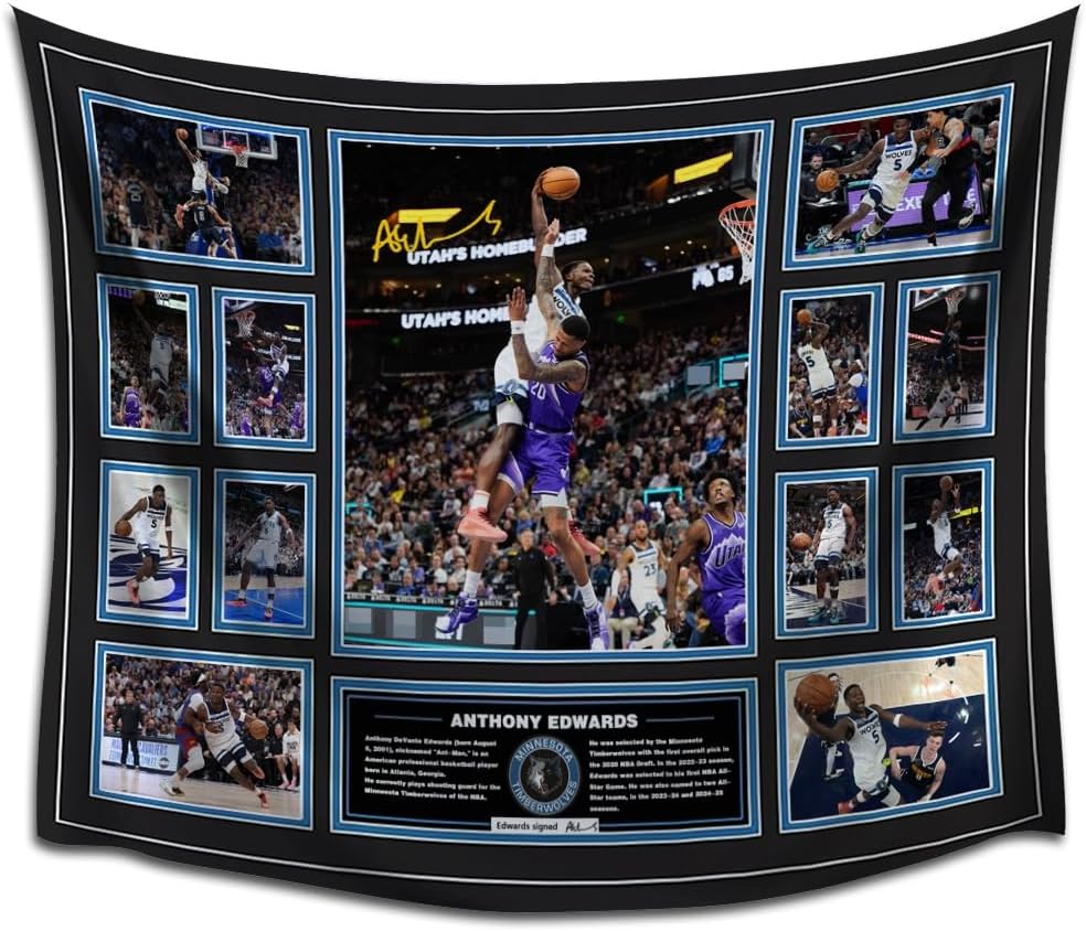 🏀[Basketball Superstar Anthony Edwards Signed Wall Tapestry Poster For Boys Gift]: That Children Love, And The Cool Design. It Is An Indispensable Display Decoration For Basketball Associations/Teams On Campus, Inspiring This Young Child To Be Active Go Up, Move Forward Bravely To Your Favorite Basketball Dream! Star Anthony Edwards Tapestry Perfect For Kids Christmas Gifts, Birthday Gifts, Back To School Gifts, Thanksgiving Gifts, Your Kids Will Love It.