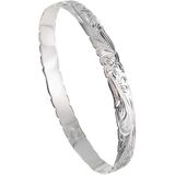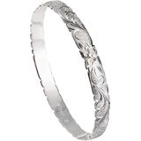 سوار من الفضة الإسترلينية 925 من الفضة الإسترلينية على شكل زهرة بلوميريا بحافة مموجة، خالٍ من النيكل ولا يسبب الحساسية للبشرة الحساسة، يتضمن صندوق هدايا - هدايا مجوهرات للنساء والزوجة والأم والابنة (8 مم من الفضة الاسترلينية السوداء Kuuipo، 7.5 بوصة)