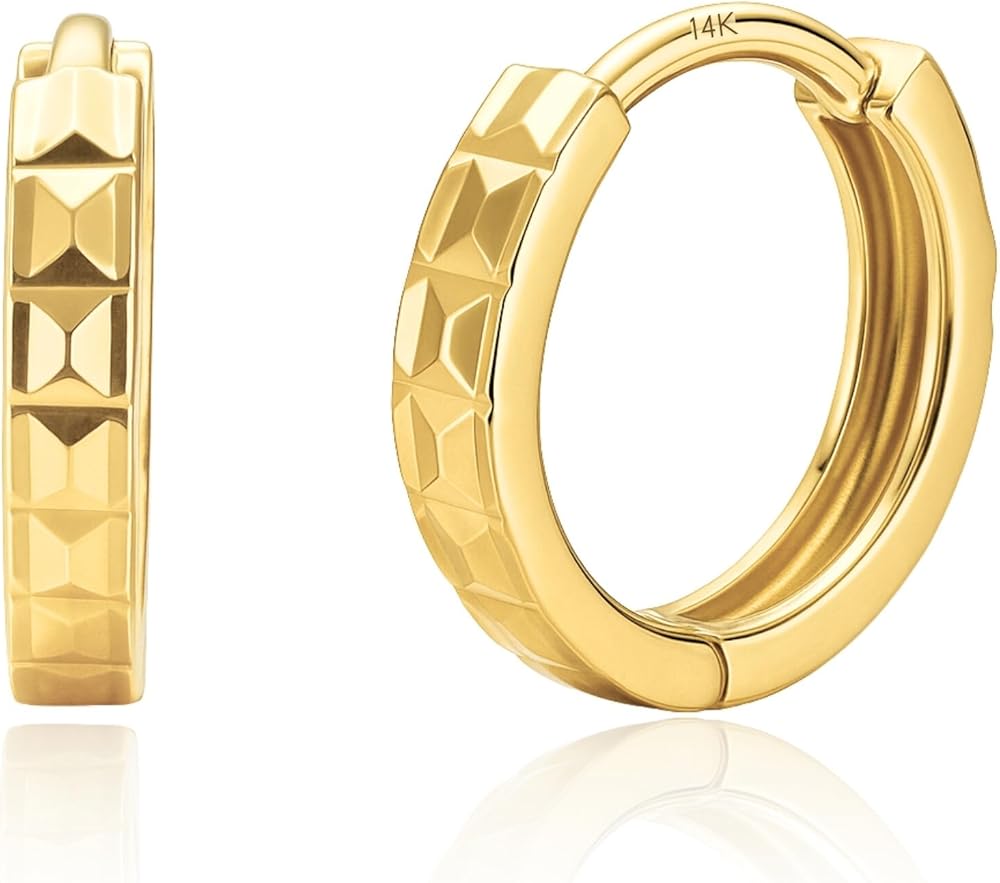 • الذهب الصلب عيار 14 قيراط - مصنوعة من الذهب الأصفر الصلب عيار 14 قيراط ومختومة بـ "14 قيراط" للأصالة، توفر هذه الأقراط المعانقة المصنوعة من الذهب عيار 14 قيراط جمالًا ومتانة خالدة.