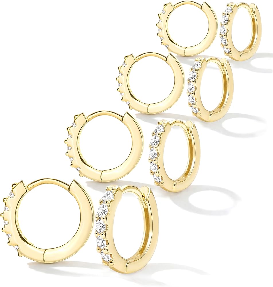 أقراط دائرية صغيرة من الذهب للنساء، أقراط هوجي أنيقة مطلية بالذهب عيار 14 قيراط لا تسبب الحساسية للأذنين الحساسة، مجموعة أقراط زركونيا مكعبة من الغضروف الزنمة اللطيفة لمجوهرات ثقب متعددة