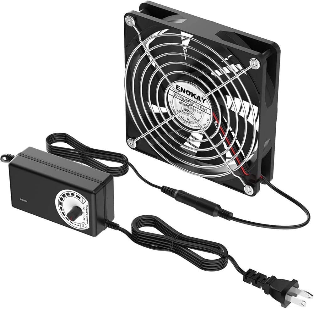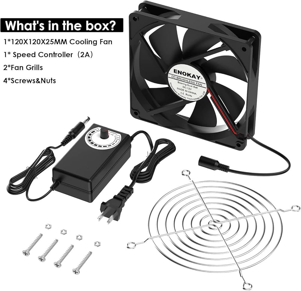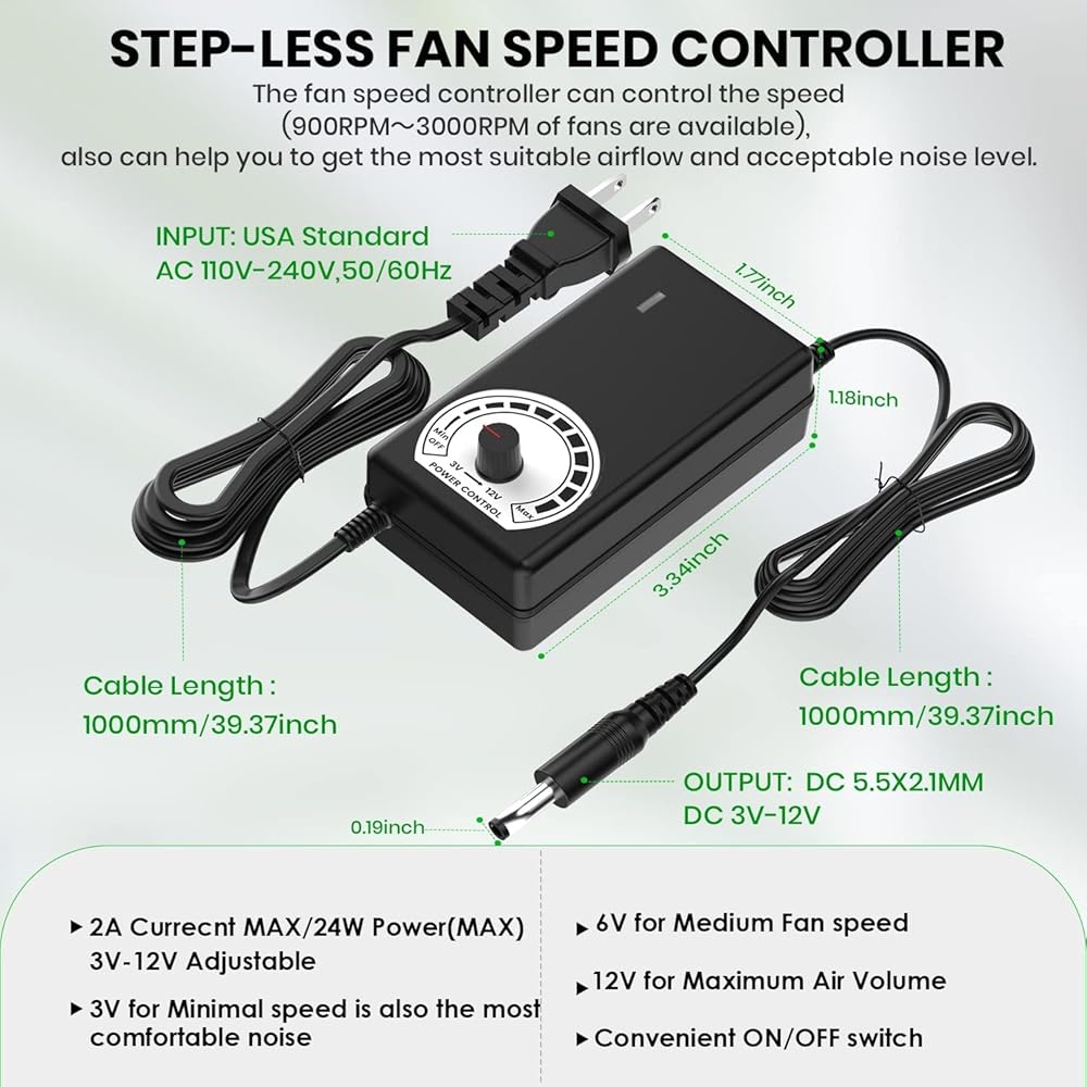 اينوكيه مروحة تعمل بتيار مستمر 12 فولت 120 ملم مع وحدة تحكم سرعة قابلة للتعديل بتيار متردد 100 فولت و240 فولت وسرعة عالية 3000 دورة في الدقيقة لتدفق الهواء والتبريد والتهوية وتبادل الهواء وتبريد