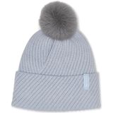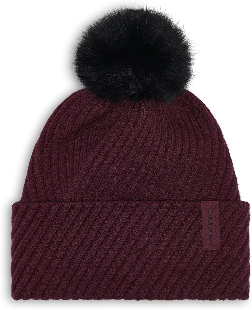 This Calvin Klein Women's Accessories is a Diagonal Rib Winter Hat Faux Fur Pom Velboa Fleece Lining Warm