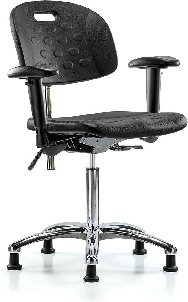 LabTech Seating LT40741 Class 10 مقبض غرفة نظيفة من البولي يوريثين كرسي بمقعد متوسط قاعدة كروم، أذرع، ينزلق