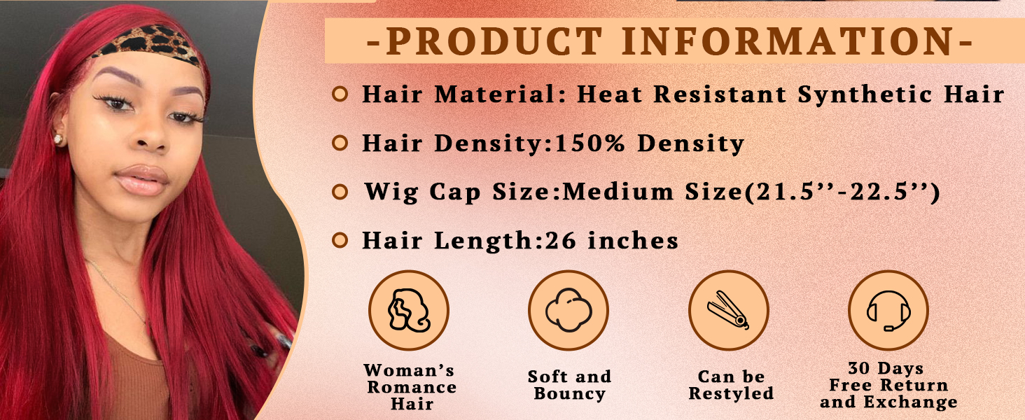 【ميزة عصابة الرأس】يبلغ طول قبعة الرأس المستعار الأحمر الطويل المستقيم 66 سم. حجم قبعة الشعر المستعار: قبعة متوسطة (21.5 بوصة - 23 بوصة) متوفرة مع مشبك فيلكرو قابل للتعديل و3 أمشاط بالداخل، يمكنك أيضًا ضبط الفيلكرو وفقًا لحجم رأسك.