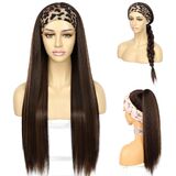 【خامة ألياف عالية الجودة】شعر مستعار طويل مستقيم عالي الكثافة، لا يوجد دانتيل أمامي للنساء ذوات البشرة السمراء، شعر مستعار صناعي ممتاز مقاوم للحرارة. يمكنك إعادة تصفيفه تحت درجة حرارة 302 درجة فهرنهايت.