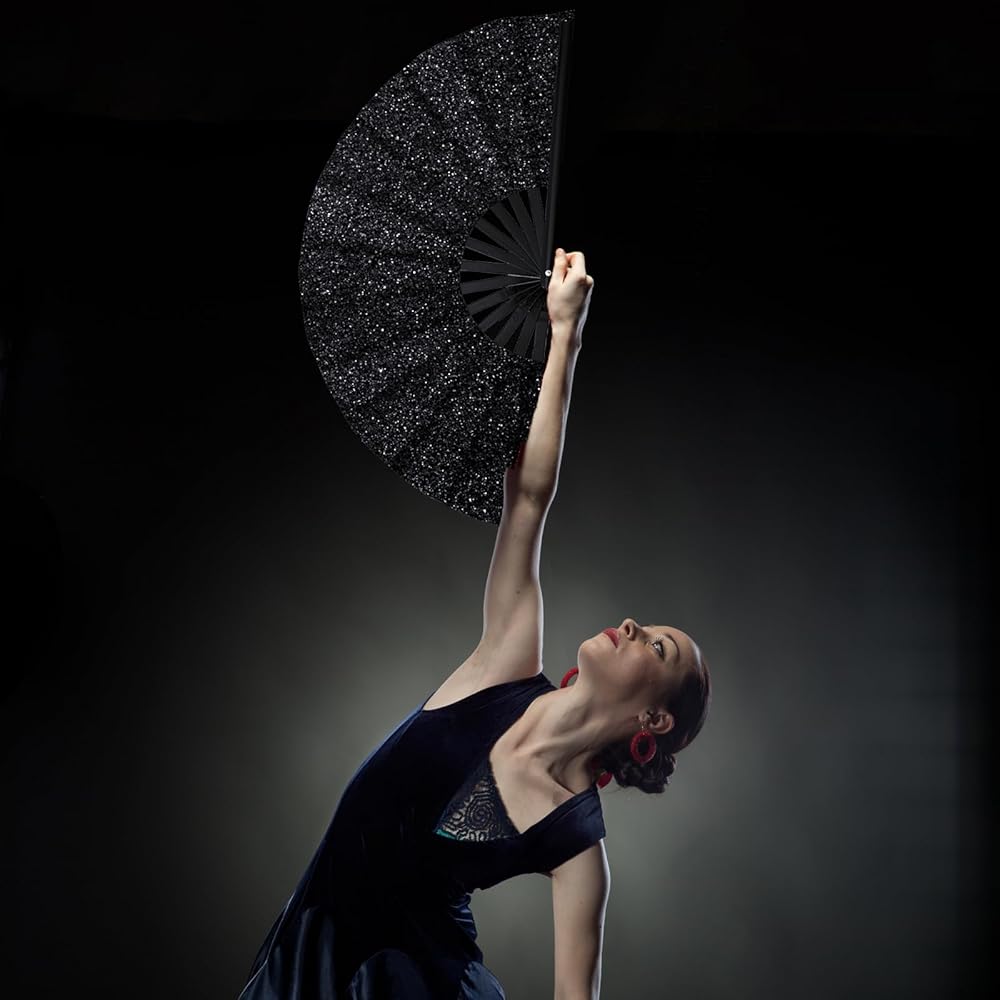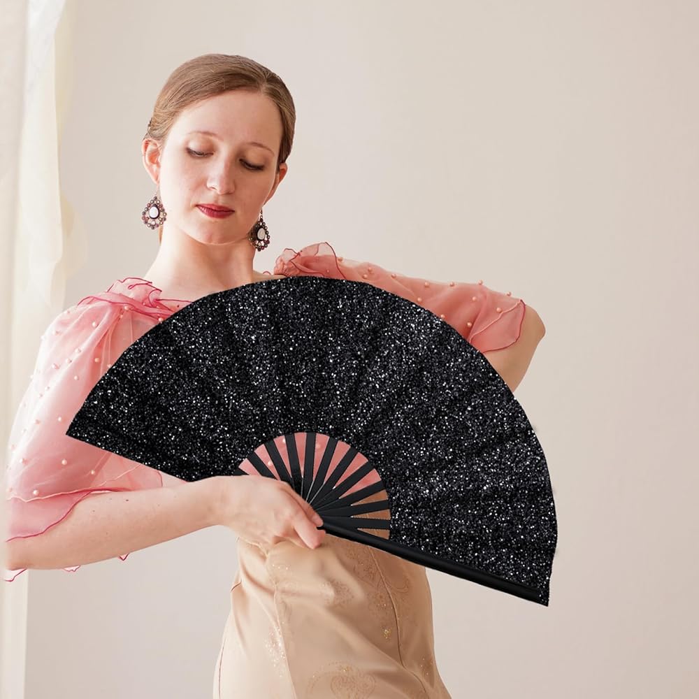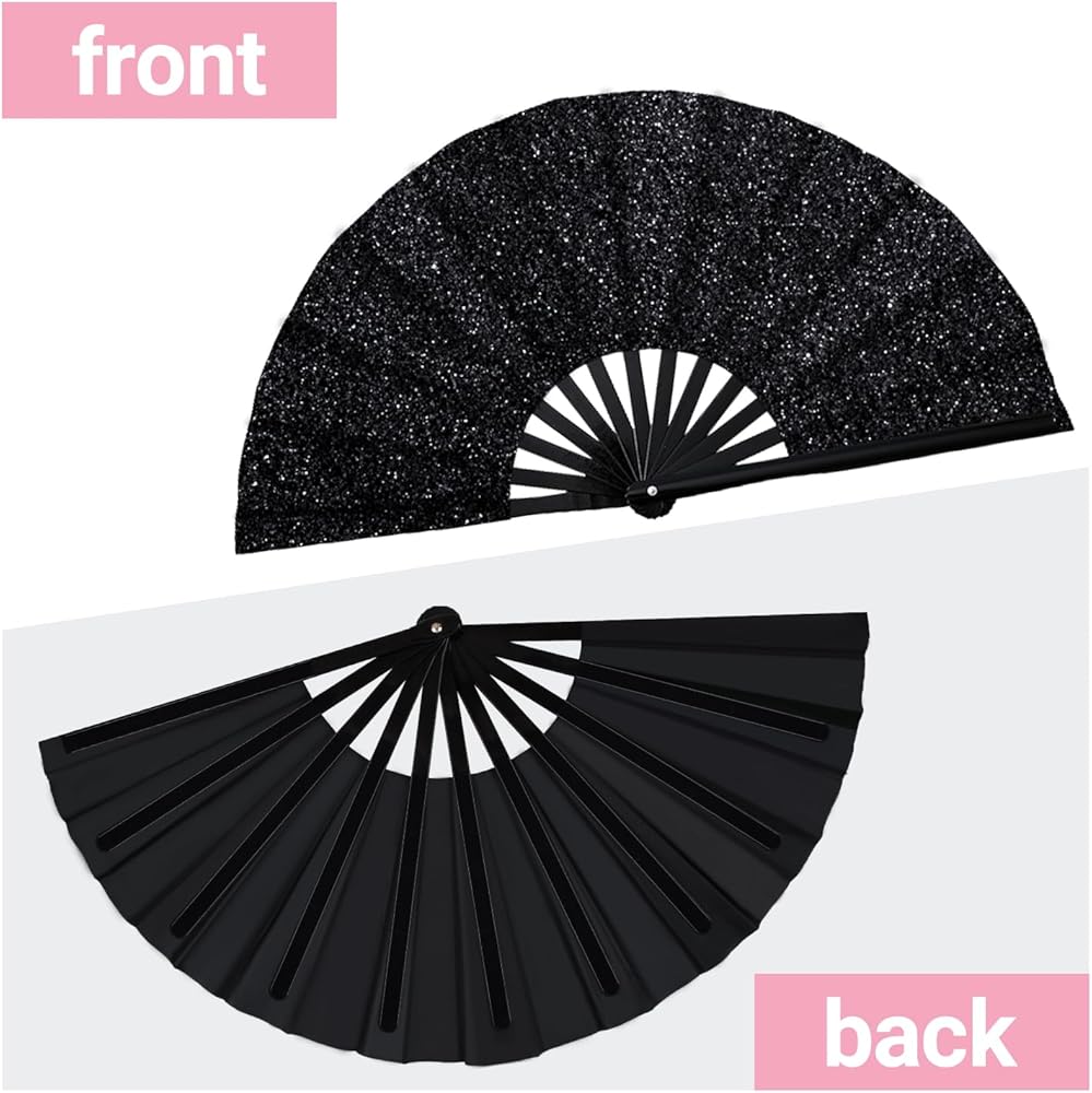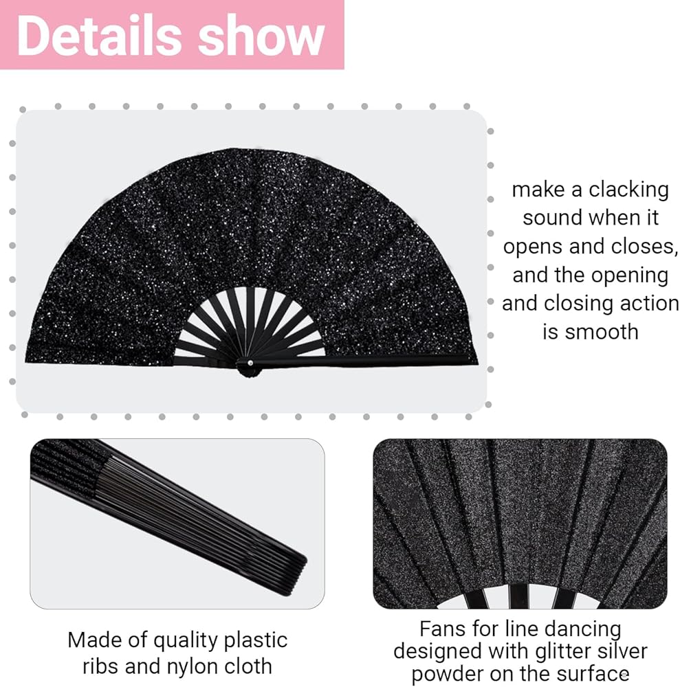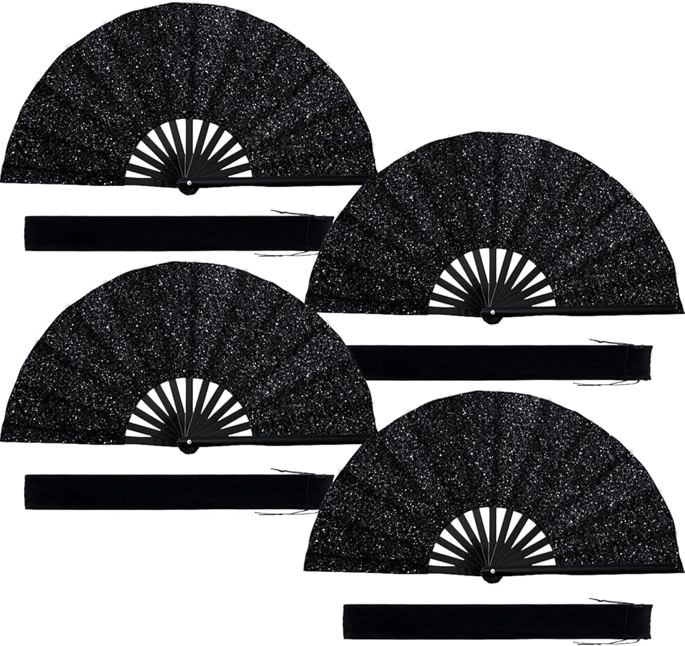 4 قطع من مروحة قابلة للطي كبيرة لامعة - مروحة يدوية منبثقة للرقص على الخط ومراوح طقطقة للأحذية على الرقص على الأرض، والحفلات، وEDM، والزفاف، وفي الهواء الطلق، والديكور