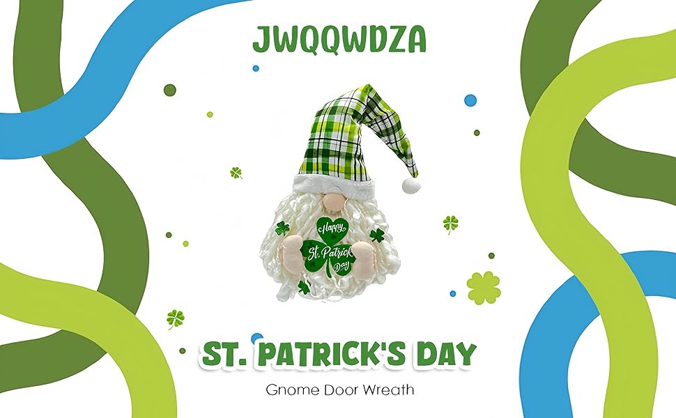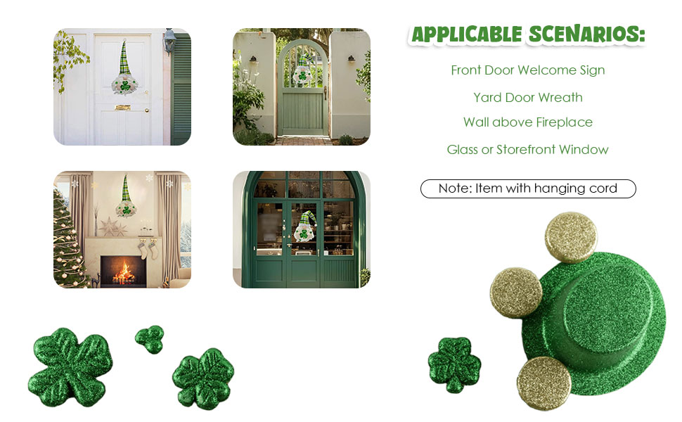 أكاليل تاج شامروك جنوم القديس باتريك للباب الأمامي، ديكور باب القبعة الخضراء للمهرجانات الأيرلندية، زخرفة العطلات (الجنوم الأخضر، 24 بوصة * 12 بوصة * 2 بوصة)