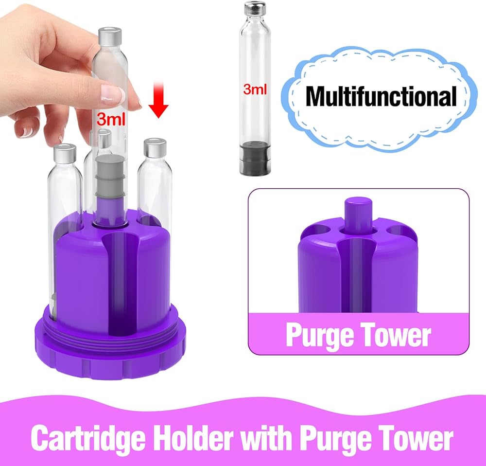 متعدد الوظائف: حامل خرطوشة سعة 3 مل مع برج تطهير، ومحطة تنظيف وملء خراطيش قلم السفر - تصميمان عمليان في واحد.