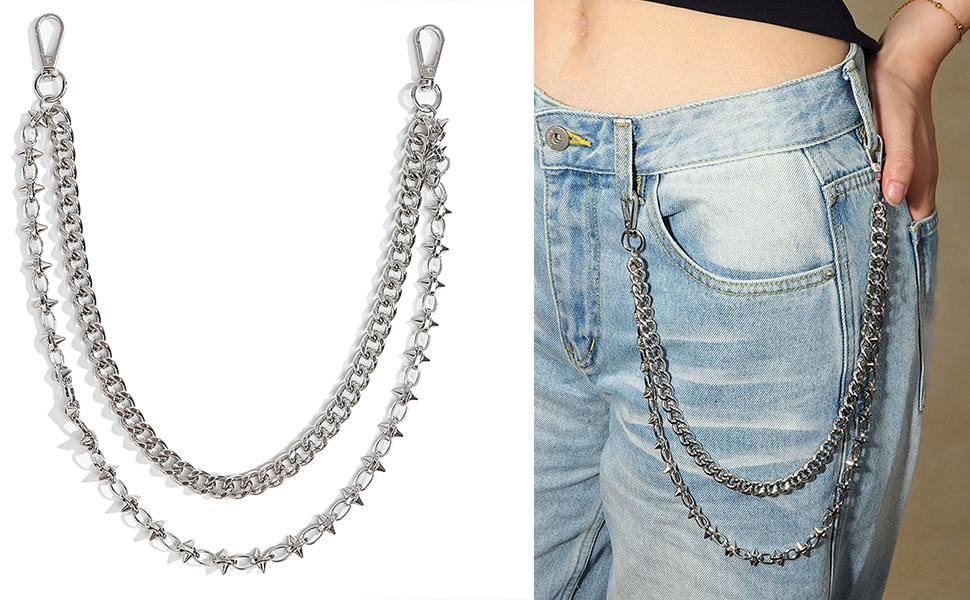طول قصير ومكتنز: بطول 50 سم (19.7 بوصة)، تم تصميم هذه السلسلة من أجل ثنية حديثة عالية التأثير توضع أعلى على الورك. يبرز هذا الطول المركز الروابط السميكة والثقيلة والتفاصيل المرصعة للحصول على مظهر قوي.