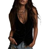 تصميم أنيق وأنيق: يتميز برقبة على شكل حرف V بدون أكمام مع ياقة على شكل طية صدر، وتصميم بزر واحد، ومقاس نحيف، وطول قصير. الصورة الظلية الأنيقة تضفي مظهرًا جذابًا على شخصيتك، بينما يضيف الملمس المخملي الكلاسيكي لمسة من الأناقة.