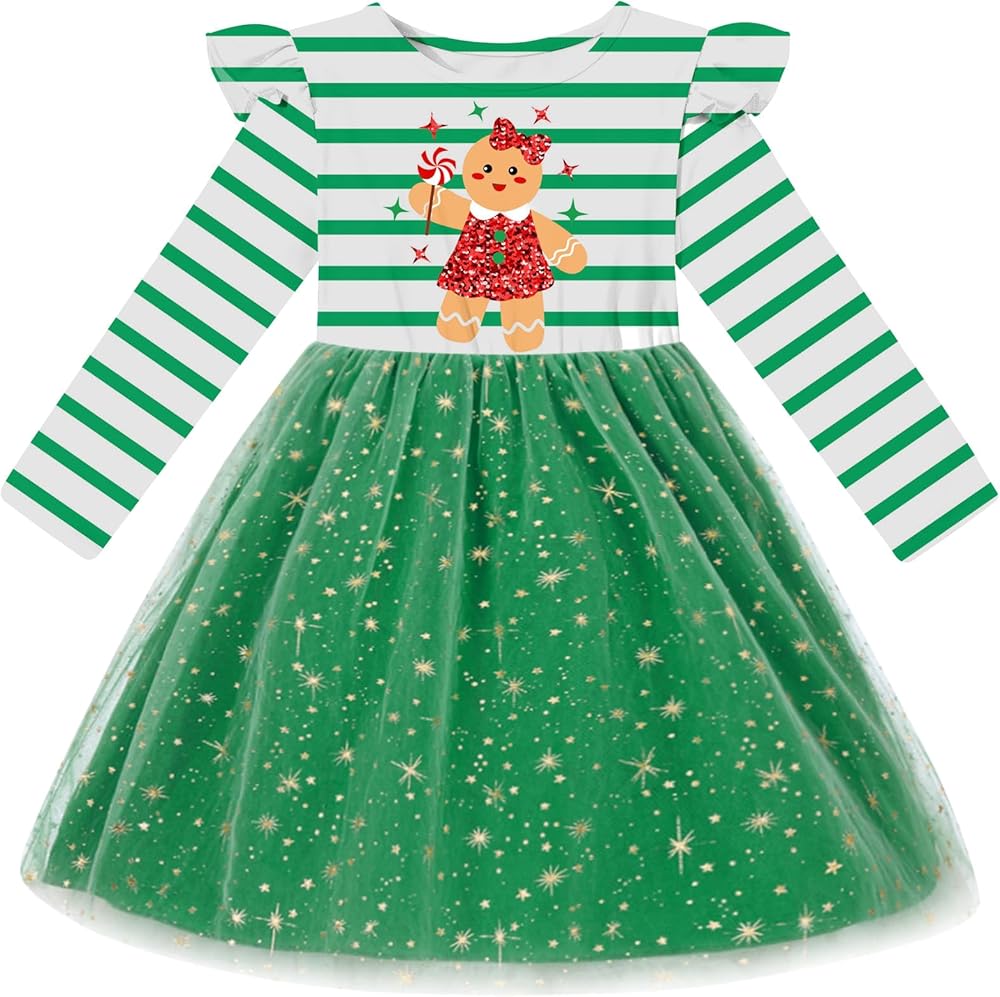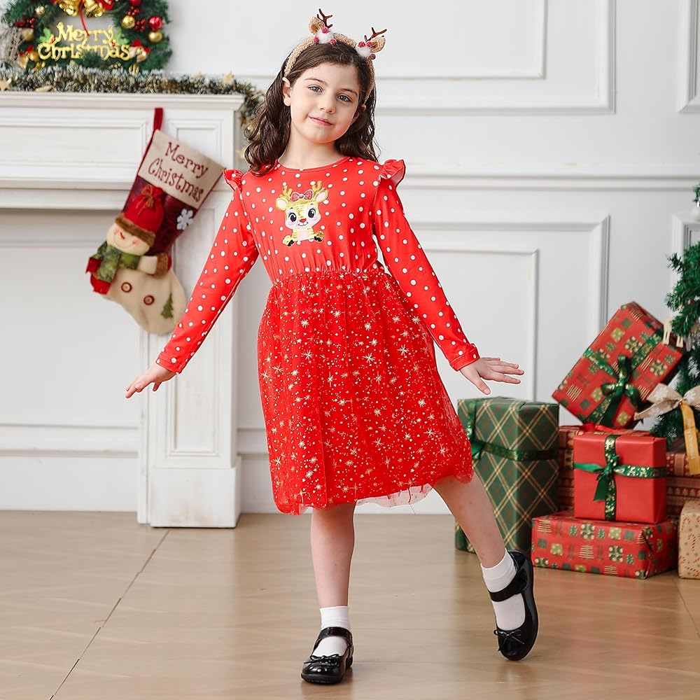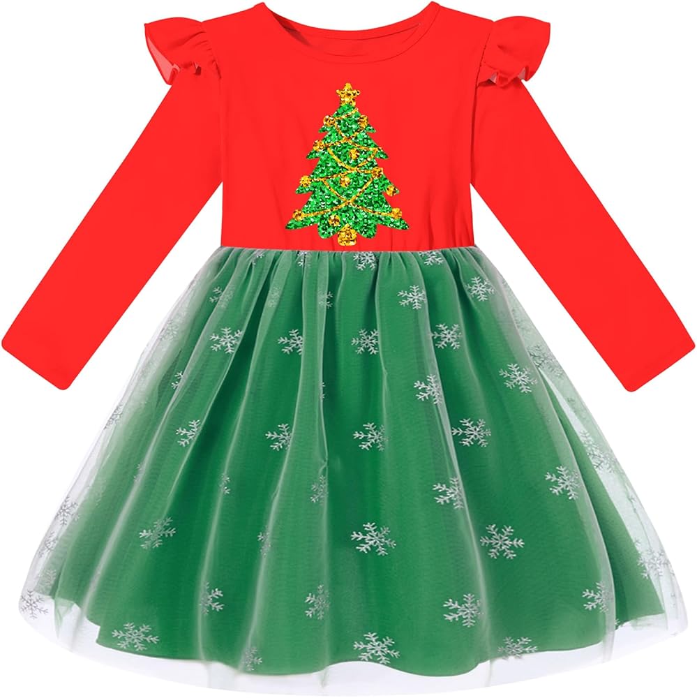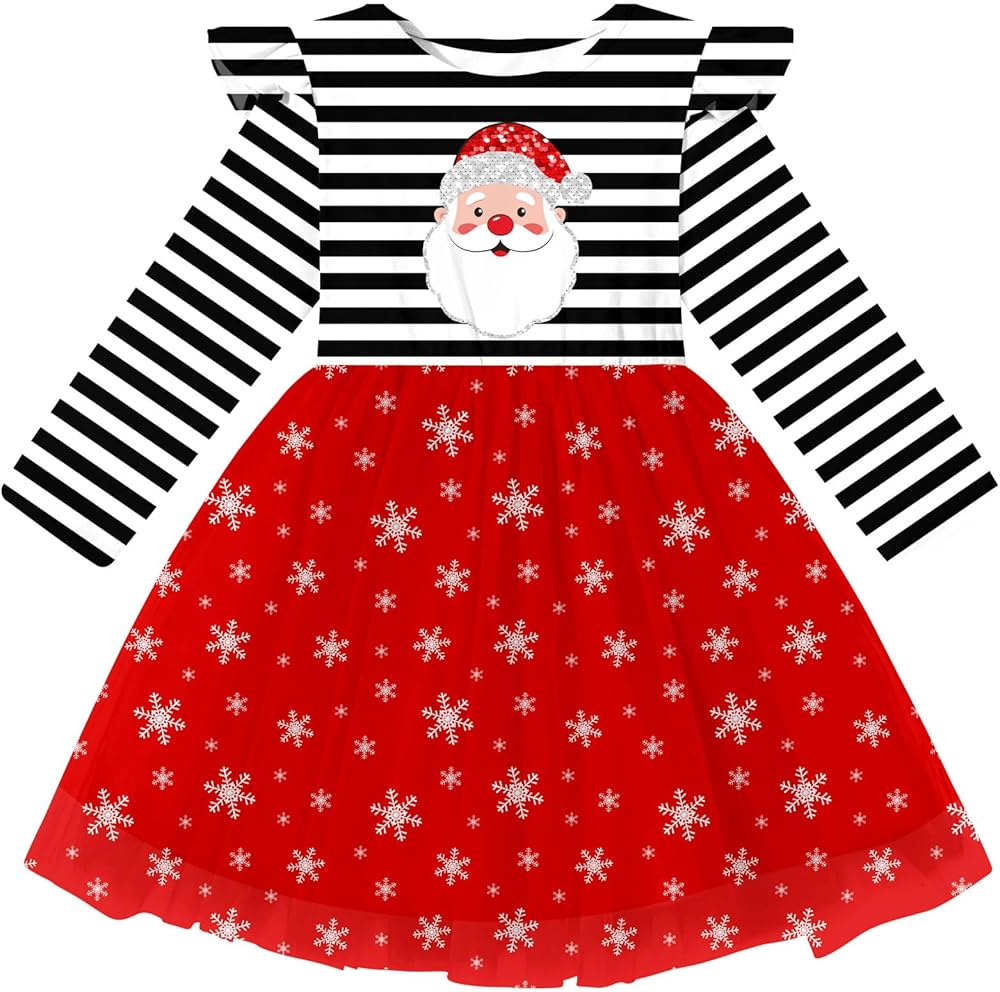 نمط طباعة الترتر: يتميز فستان الترتر للأطفال الصغار بتصميم شجرة عيد الميلاد سانتا كلوز وقبعة الرنة وطباعة رجل الثلج وتصميم الترتر. مع أكمام طائرة مخططة منقطة وأكمام طويلة، تجعل فتاتك أكثر لمعانًا وجذابة